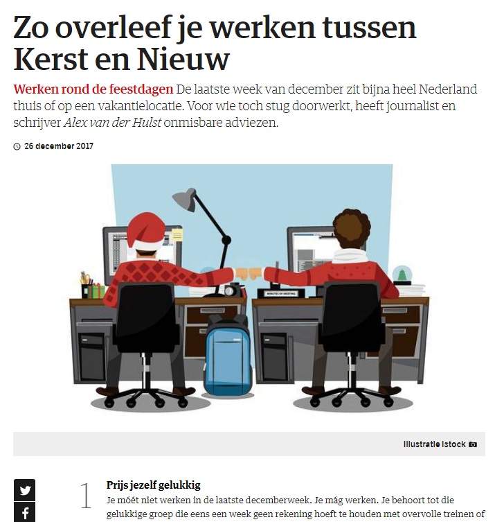 De laatste week van december zit bijna heel Nederland thuis of op een vakantielocatie. Voor wie toch stug doorwerkt, heeft journalist en schrijver Alex van der Hulst onmisbare adviezen.