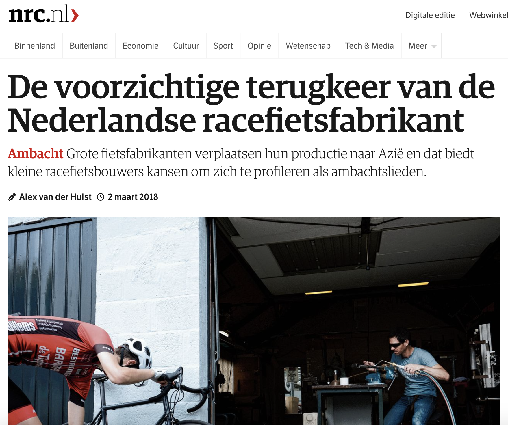 Grote fietsfabrikanten verplaatsen hun productie naar Azië en dat biedt kleine racefietsbouwers kansen om zich te profileren als ambachtslieden. Een artikel in NRC met St. Joris Cycles, Lester Cycles, Peter Serier (Presto, Giant), Gerard Vroomen (3T, Open), Herman Braun en anderen.